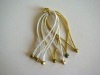 elastic cord with two metal barbs material:pp.polyester.nylon.metallic size: 1.5mmDiameter.15cmLength<not include the barb> color: black other color and size: as per your request We are a professional manufactuer of gifts accessories, such as bow, rope and webbing, pouch and bag, tassel, and so on. Please allow me to introduce them breifly as follow:1.BowMaterial: satin, organza, polyester, metallic, plaid, PET,PVC or other material that could find in the marketClassification:ribbon bow,pull bow, curly bow, mini bow, star bow, rosette, confetti and other decoration bow2.Ropes and webbing Material: pp, nylon, polyester, metallic, cottonSize: from 0.8mm to 10mmStyle: elastic and non-elastic, barb (or round button) and non-barb, hollow and core(cotton yarn, pp thread, wire)3.Pouches and bagsMaterial: satin, polyester, organza, nylon, cotton,jute, metallic, non-woven, velveteen, or otherfabric that could be found in the marketImprint: print logo, flower and letter by hot stamp, hot foil,silkscreen, embroideredBottom: round bottom, square bottom, common bottomDrawstring: rope, ribbon, tassel, could add barb,pearl or others4.TasselsMaterial: rayon, nylon, ppcollection: bookmark tassel, curtain tassel, or other decoration tassel5. Ribbon Material: satin, organza, polyester, metallic, rib, velvet,PETSize: from 1/8" to 2"There are 600 machines to braid kinds rope and webbing, and many professional workers make kinds bows and sew various pouches. Our products are alllow price and high quality, of course, good service also help us to establish business relationship with many customers that come from East Asian Tigers, Europe , North America, Austrial and so on. Many of them have establish long business relationship with us.Welcome your enquiry and questions at any time. If you like, we are very glad to make sample according to your request for your information. I am sure that you will satisfied with our price,quality and service.Look forward to hearing from you early!